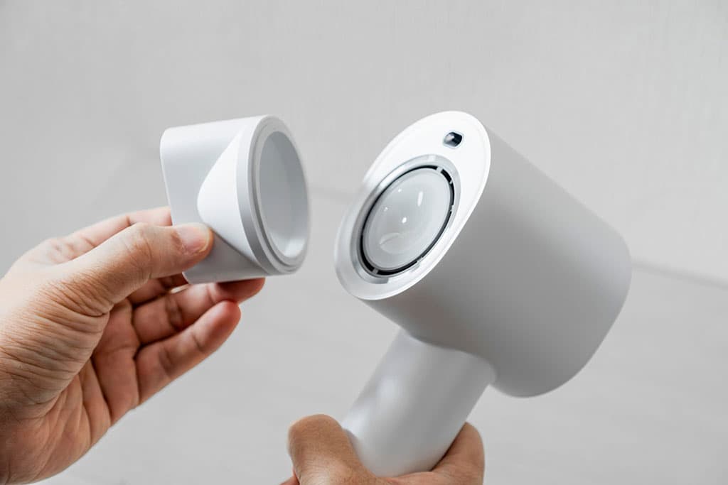 また、付属しているフードの着脱も簡単です。フードはスタイリング時に便利なアイテムで、使用すると風の当たる範囲が狭くなり、一部分の髪のクセを伸ばしたり、髪を立ち上げてボリュームを出したりするのに役立ちます。全体的に髪を乾かすときはフードを外し、スタイリング時にフードを使う方には、手軽に取り付け・取り外しができるのでとても使いやすいです。
