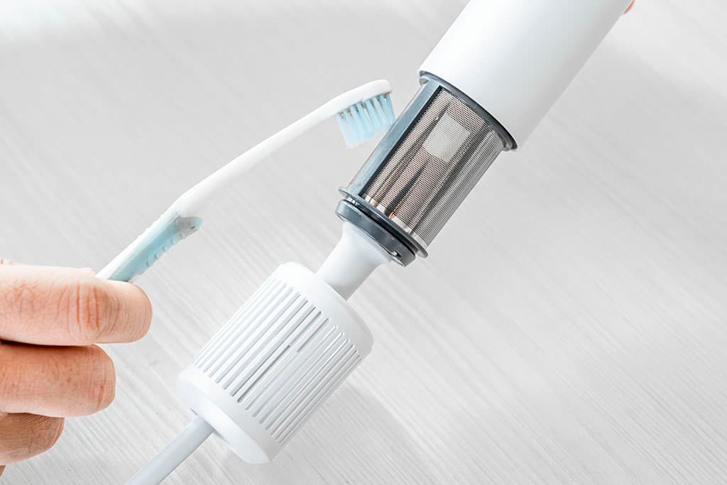 お手入れも簡単で、持ち手部分の吹き込み口カバーを外し、柔らかい歯ブラシなどでホコリや髪の毛を取り除けます。また、「フィルタークリーンモード」では、フィルターを外してファンを逆回転させ、吸い込んだホコリや髪の毛を逆噴射で簡単に取り除くことができます。この機能があるので、常に清潔な状態を維持できるのも嬉しいポイントです。