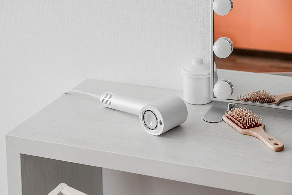 髪が長い方は、風速ボタンを調整して風を弱くすることもできます。スタイリングの際には、フードをかぶせて風速を弱めると、ブラシを使いながらのスタイリングがしやすくなります。