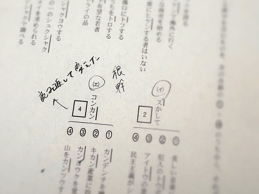 それを読んだ上で問いが続く。問い1〜5は文中に出てくる漢字当てクイズ。余裕だろと思ったけどモヤがかかったみたいに思い出せない漢字もある。なるほど、これが共通テストの難しさか。制限時間もあるため、プレッシャーがかかってどうでもいいところで迷ってしまう。マークシートに同じ数字が並ぶと不安になる。