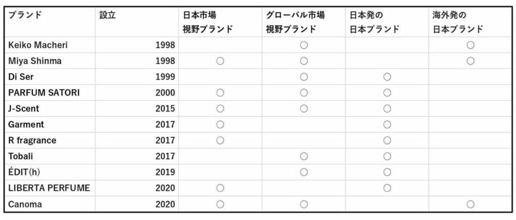 下記は、私が注目している日本のクリエイターがローンチしたフレグランスブランドを体系的にまとめたリストです。あくまでも私の視点ですので、ご了承ください。何をもって日本のブランドかというと、ここでは日本で産まれたブランド、日本人がローンチしたブランドと定義しています。