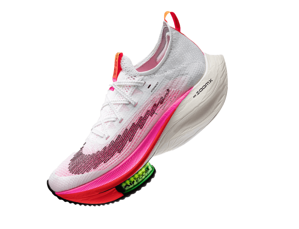 オリジナルの「ナイキ エア ズーム アルファフライ ネクスト%」は、今年3月のびわ湖毎日マラソンで、鈴木健吾選手が着用していたモデル。2019年10月に非公式のレースながら、エリウド・キプチョゲ選手が人類初のフルマラソン2時間切りを達成した際に履いていたのも、同モデルのプロトタイプである。