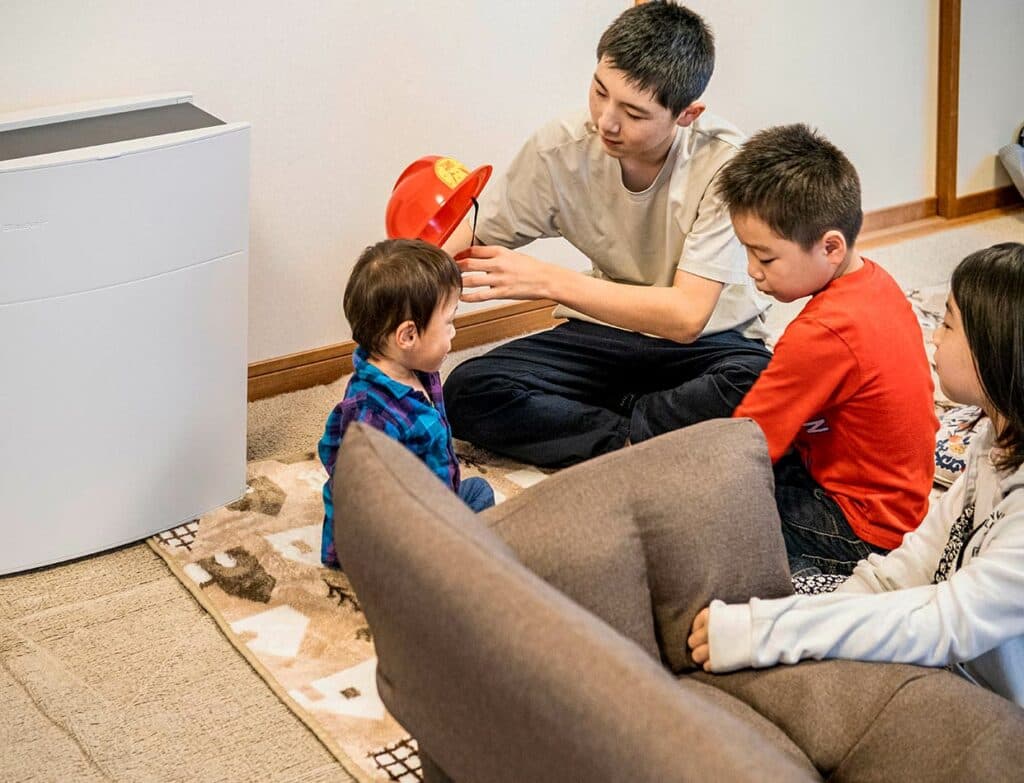 「この空気清浄機を置いてから、私たち夫婦もほとんど風邪を引かなくなりましたし、長男の佑平は小学校も中学校も休まず通うことができたんですよ。竜佑もおかげさまで大きな病気はしていません。家族みんながきれいな空気の中で過ごせていると思います。(俊子さん)」