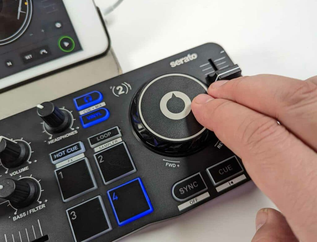 プラッターの直径が小さくておもちゃみたいなものだし、コントロールノブやボタンの数も限られています。でも、ガチなスクラッチやビートジャグリングをするHipHop DJでなければまあいける。気兼ねなくDJプレイをするというなら、コレくらいの機能のほうがいい気もする。