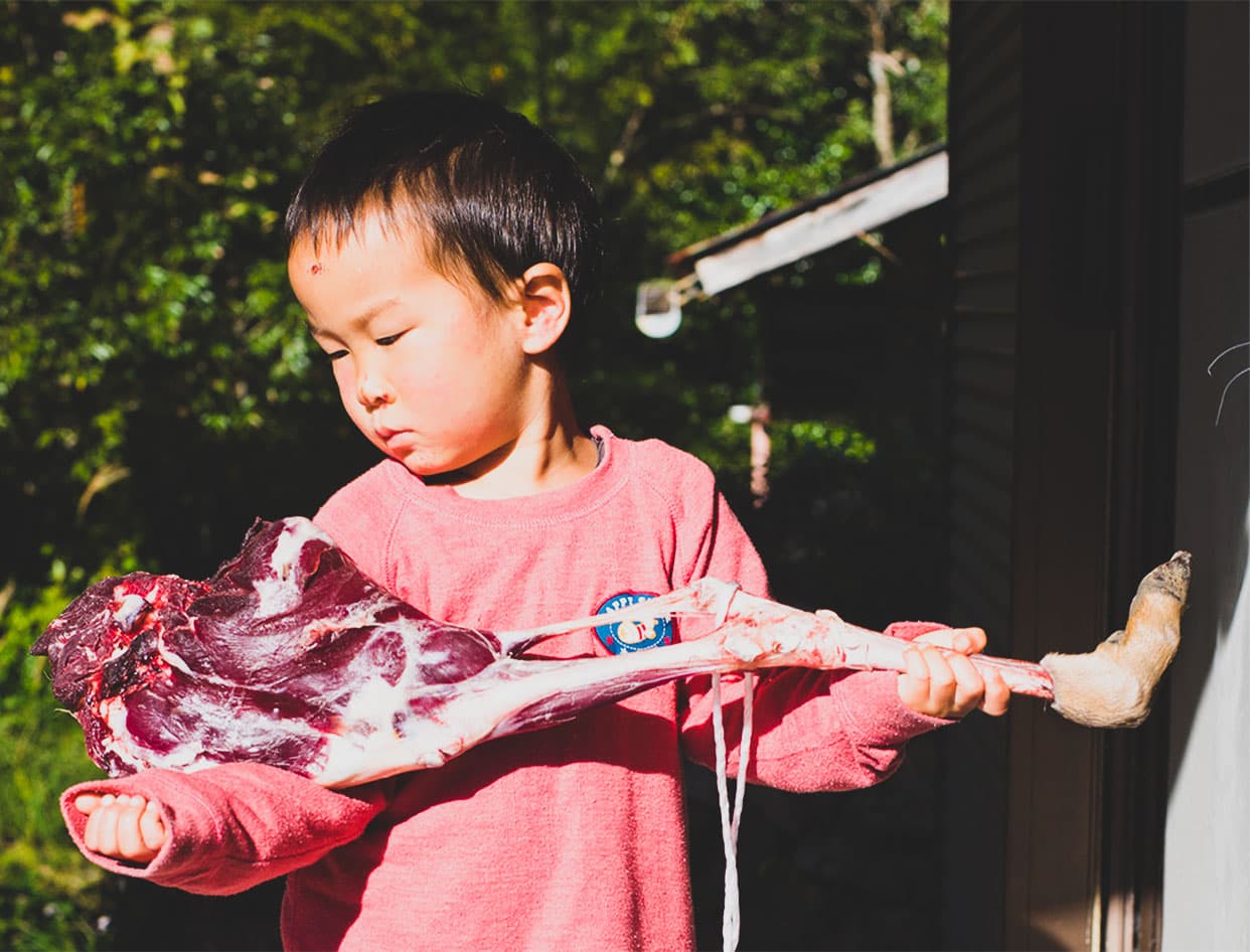 また、仕事の合間に自宅に戻ると、知り合いの猟師さんの軽トラが僕の横に停まり、「鹿がかかったから、捌くの手伝ってくれー」と言われ、「すんません、今仕事のあいまで……」という、都会では絶対にあり得ないであろう会話が繰り広げられたこともある。その後、「ほな、足一本あとで持ってったるー!」と言われ、実際に捌きたての温かい鹿の足をいただいたのは今でも忘れられない。