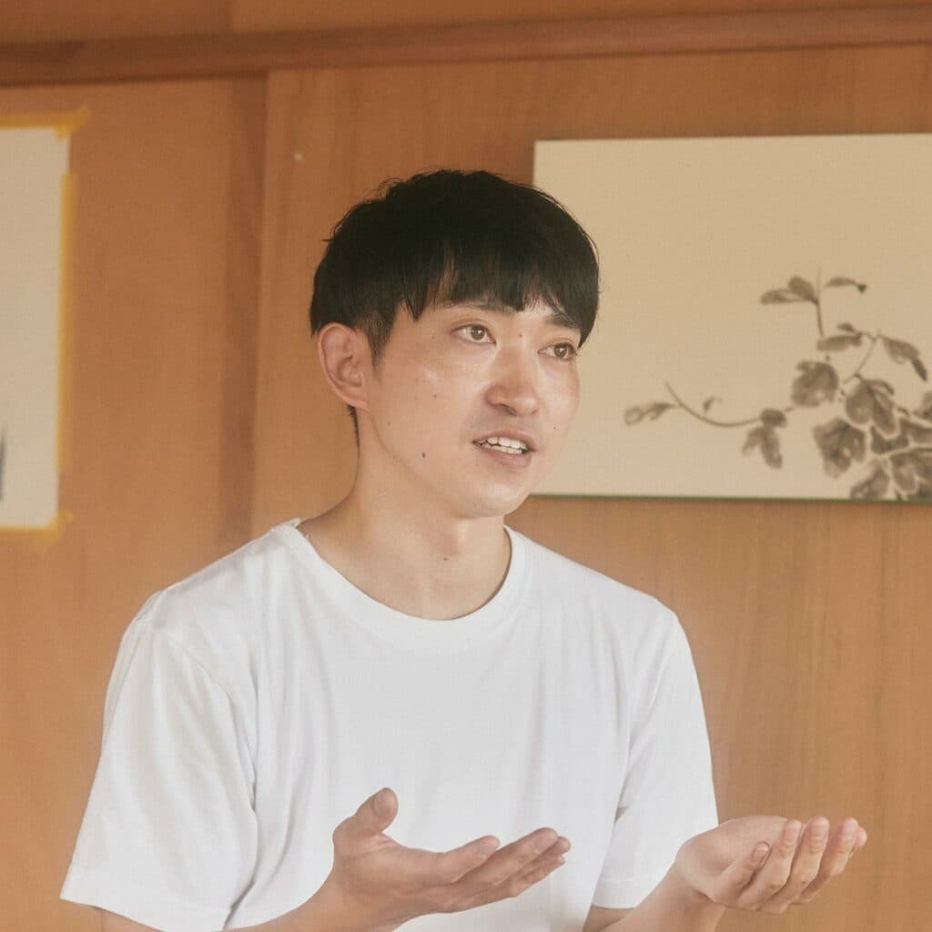 1987年生まれ、大阪府出身。京都を拠点に活動。琳派や狩野派、水墨画などの伝統的な日本の絵画をベースにしながら、現代的な要素を取り入れた作品を制作。歴史や伝統を再考し、現代美術の流れを組み込むことによって、新しい日本の絵画作品の可能性を拡張し続けている。掛け軸や襖絵といった表具など、伝統的かつ多様な手法を駆使して現代の建築空間との対峙も積極的に取り組みながら「日本の絵画とは何か」を探究し続けている。国内外での個展やグループ展にも多数参加。