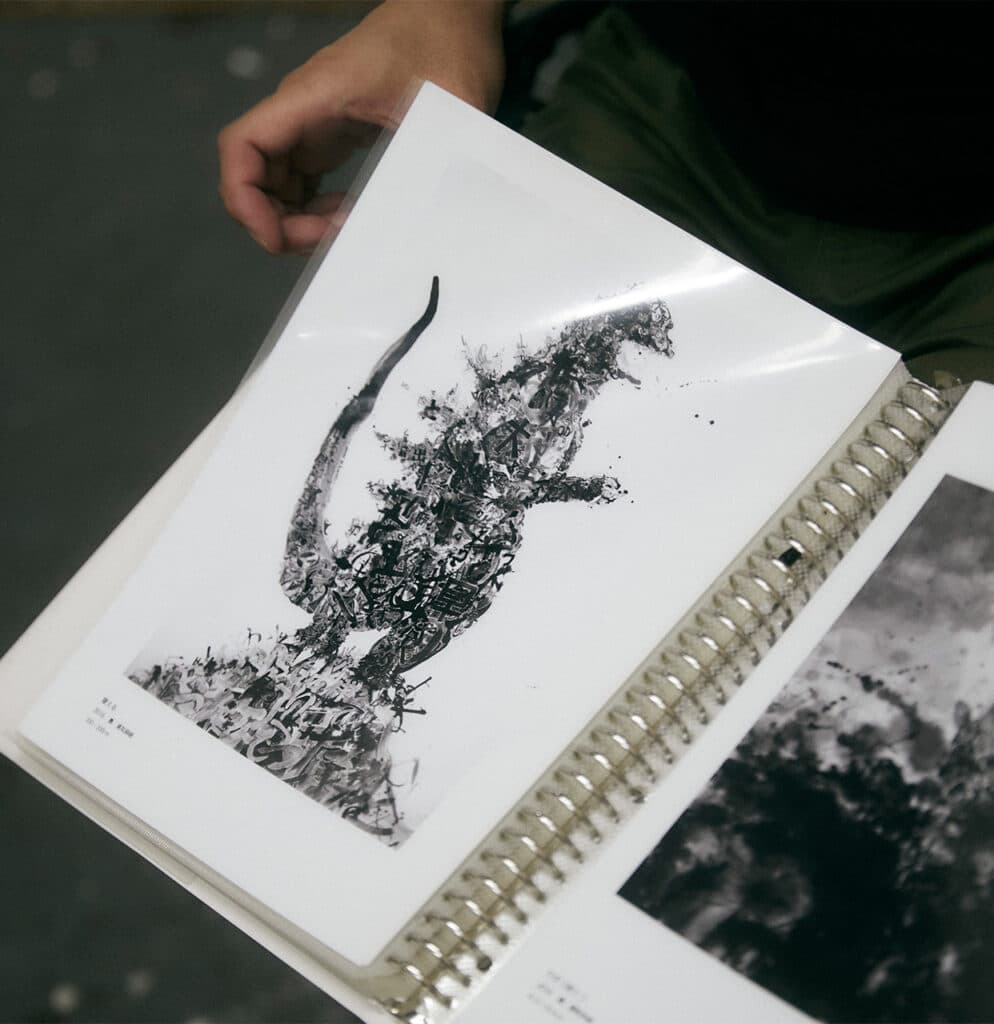 西垣さん:以降、ゴジラにまつわるモチーフ、特に尻尾がキーとなる墨絵を描いていくのですが、2016年ごろの作品では、文字などの具体的な表現からもっとイメージを膨らませられるようになっていきました。