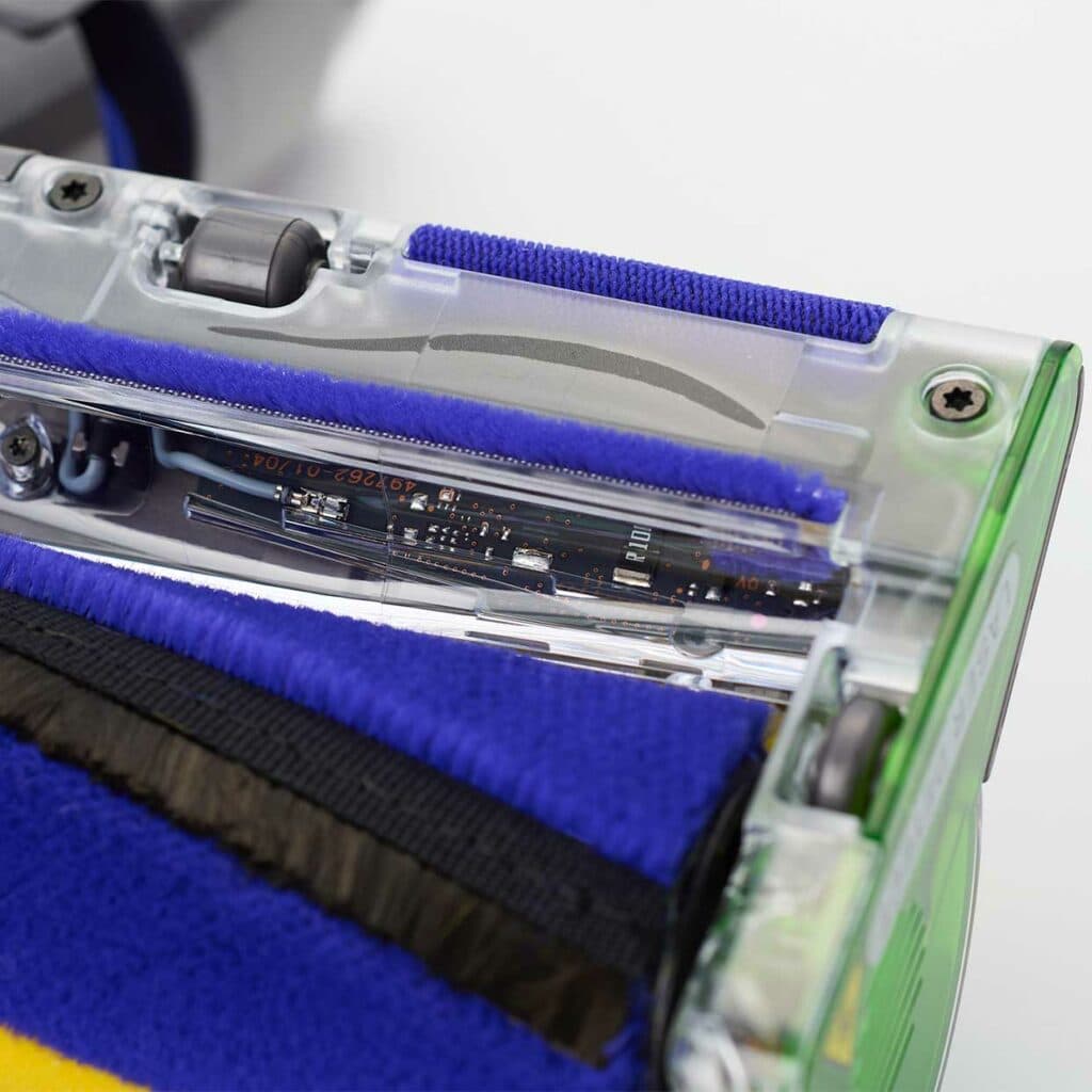 壁に沿って掃除をするときも、レーザーの光がホコリや細かい粒子がたまりやすい壁の直角部分をしっかり照らすことができます。もちろん、ヘッドがどんな動き方をしても、安定した光で照らせるような工夫もされています。