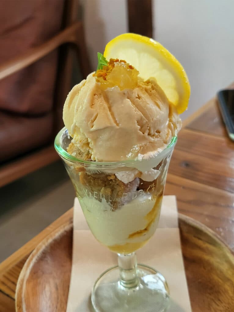 屋我地島はちみつは、あえてシャバシャバな糖度78%を狙って、早朝ではなく日中に集めるというのも養蜂業としてはかなりユニークな集め方。収穫期は1月と6月で、6月の方がより花やかな香りがする三浦さんは言う。収穫量が限られているので、1~2ヶ月で通常早々にはちみつのボトルは売り切れてしまうが、屋我地島北部にあるカフェ&雑貨のお店「CALiN cafe & zakka(カラン)」では、屋我地島はちみつやビーポーレン(みつばちが集めた花粉)を使った「しまドーナッツのはちみつパフェ」が通年で堪能できる。