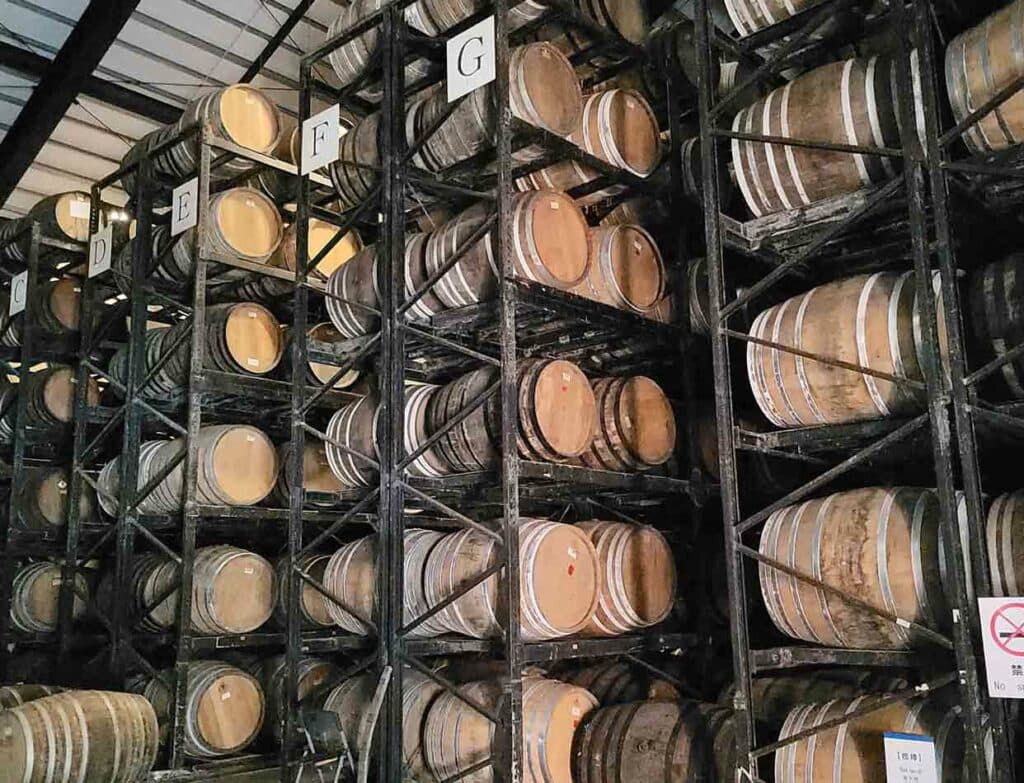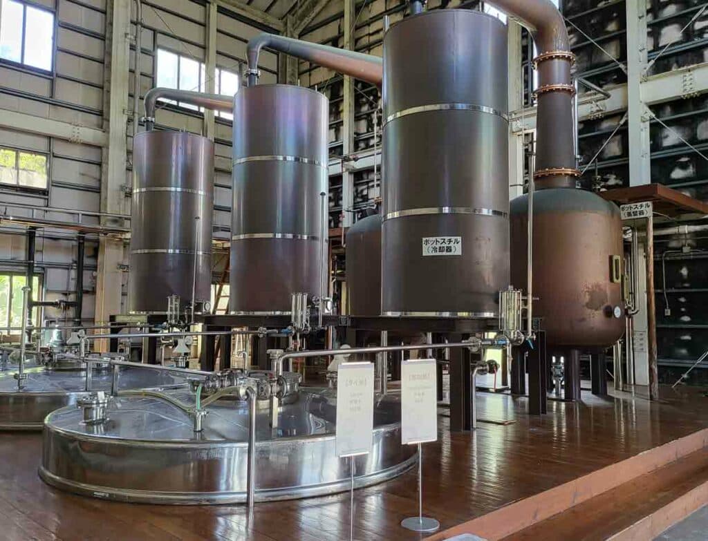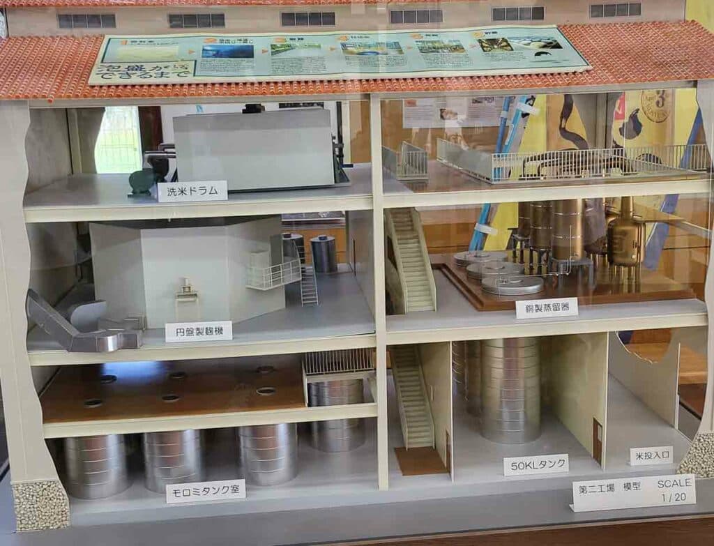 さらに醪の発酵タンクや、県内でも珍しい銅製ポットスチルを備えた蒸留機などが見られるほか、実際使用している原料のタイ米や黒麹菌をご覧いただきながら製造工程を知ることもできるなど、まさに大人の社会科見学も。また、見学の後にはお楽しみの無料試飲体験もでき、「くら」の3年、8年、さらに有料ではあるが稀少な12年熟成の古酒の飲み比べが可能だ。