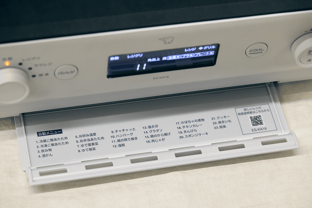 その名通り、一般的な「レンジ」「グリル」「オーブン」「解凍」機能に加え、聞き慣れない「レジグリ」「サクレジ」「パンレジ」という機能が。これらの機能について、それぞれ説明したい。